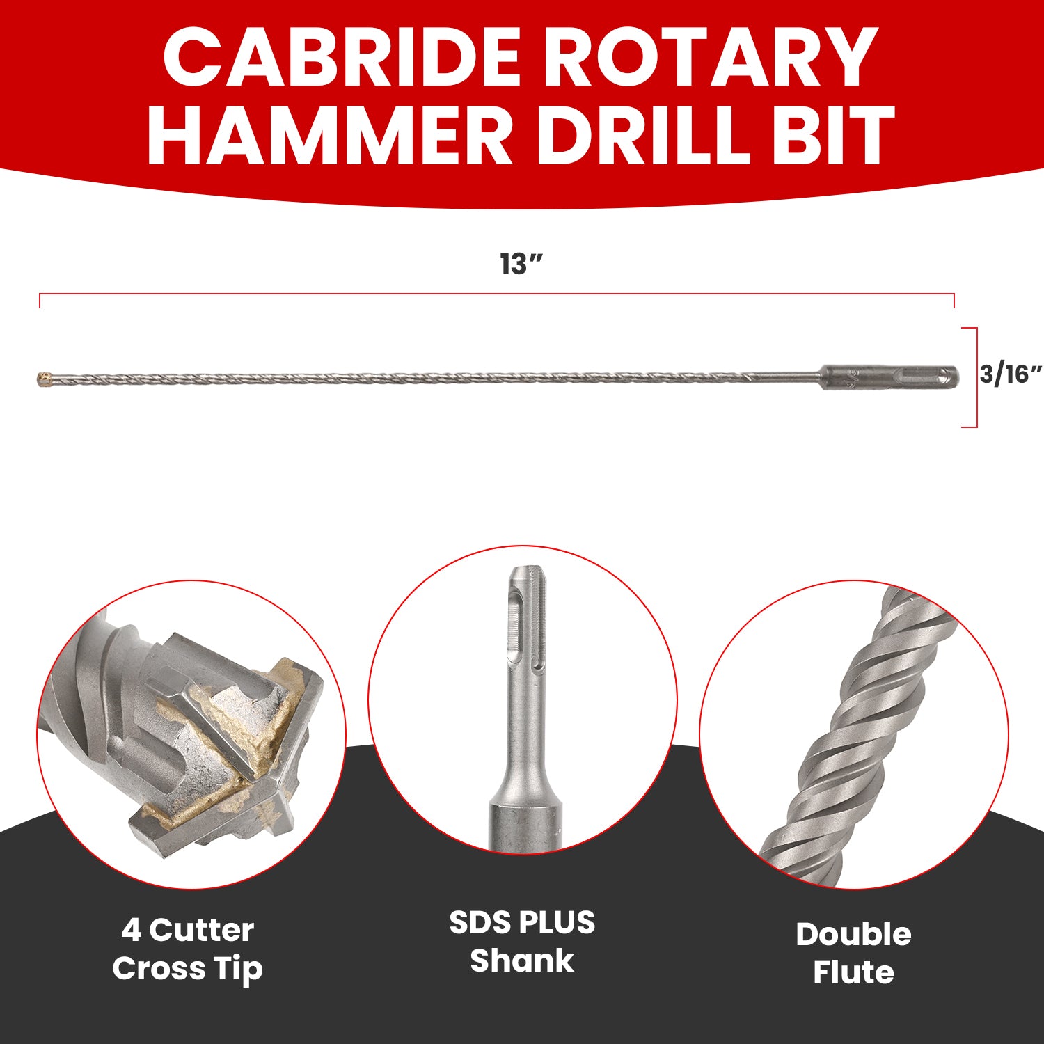 - [ Big Size ] 3/16" x 13" SDS PLUS Drill Bit – SDS PLUS rotary hammers (SDS PLUS only, please be careful before place order)